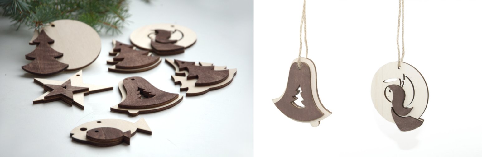 Můžete vybírat buď jednotlivé dřevěné vánoční ozdoby nebo praktickou sadu, která vyjde cenově výhodněji.