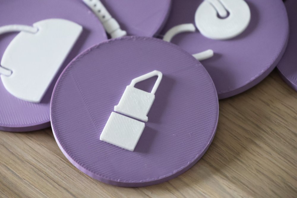 Rozlišovací štítok, ceduľka s piktogramom na box či šuplík slíčidlami.
